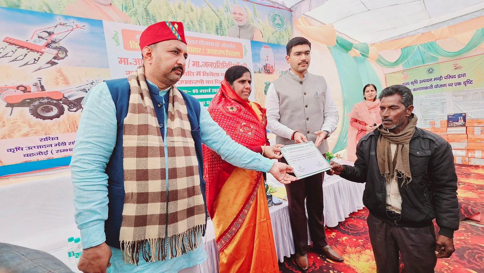 सम्भल। बहजोई में जिला पंचायत अध्यक्ष डॉक्टर अनामिका यादव एवं जिलाध्यक्ष हरेंद्र सिंह,ने मंगलवार को कलेक्ट्रेट परिसर सम्भल बहजोई में केंद्र व प्रदेश सरकार की योजनाओं, नीतियों, कार्यक्रमों एवं उपलब्धियों विषयक लगाई गई तीन दिवसीय प्रदर्शनी का फीता काटकर उद्घाटन किया। चायत अध्यक्ष ने कहा कि प्रदर्शनी के माध्यम से सरकार की योजनाओं का प्रचार प्रसार कराया जा रहा है। उन्होंने कहा कि आमजन इस प्रदर्शनी का अवलोकन कर योजनाओं की जानकारी लें व उसका लाभ उठाएं। उन्होंने कहा कि सरकार बिना भेदभाव के योजनाओं का लाभ सभी पात्रों तक पहुंचा रही है। भाजपा जिलाध्यक्ष ने कहा कि केंद्र व प्रदेश सरकार सबका साथ, सबका विकास, सबका विश्वास व सबका प्रयास पर कार्य कर रही है। उन्होंने कहा कि प्रदर्शनी के माध्यम से जहां एक और योजनाओं का प्रचार प्रसार होगा वहीं यह आमजन के लिए ज्ञानवर्धक व लाभवर्धक साबित होगी। उन्होंने कहा कि विकसित भारत संकल्प यात्रा के माध्यम से भी योजनाओं से वंचित रहे पात्रों को चिन्हित कर उनको लाभान्वित किया गया है। जिला सूचना अधिकारी बृजेश कुमार ने बताया कि कलेक्ट्रेट परिसर में लगाई गई प्रदर्शनी प्रातः 10ः00 बजे से संचालित रहेगी। और उन्होंने ने बताया कि सूचना एवं जनसंपर्क विभाग उत्तर प्रदेश द्वारा तीन दिवसीय प्रदर्शनी का आयोजन कलेक्ट्रेट परिसर सम्भल बहजोई में किया जा रहा है। प्रदर्शनी के माध्यम से मिशन शक्ति अभियान के माध्यम से महिलाओं को सुरक्षा, सम्मान एवं स्वावलंबन, 10 लाख सेल्फ हेल्प ग्रुप बनाकर 1.05 करोड़ से अधिक महिलाओं को रोजगार, प्रकृति और परमात्मा की अनुकंपा का प्रदेश उत्तर प्रदेश, उत्कृष्ट शिक्षा एवं चिकित्सा का केंद्र उत्तर प्रदेश, ओलंपिक पदक विजेताओं का सम्मान, नई उड़ान नई पहचान, एक जनपद एक उत्पाद, विद्यार्थियों की यूनिफॉर्म, बैग व स्टेशनरी के लिए डीबीटी के माध्यम से 1200 रुपए, हमारा संकल्प विकसित भारत, मोदी की गारंटी उज्ज्वला योजनाओं से महिलाओं के लिए धुंआ मुक्त रसोई, उत्तर प्रदेश में 1.75 करोड़ से अधिक परिवारों को मुफ्त गैस कनेक्शन, 36000 करोड रुपए से 86 लाख लघु एवं सीमांत किसानों का ऋण मोचन, पीएम किसान सम्मन निधि से किसानों को प्रतिवर्ष रुपए 6000 की सहायता, उत्तर प्रदेश में 2.68 करोड़ किसानों को रुपए 68139 करोड़ हस्तांतरित। उन्होंने बताया कि सिंगल विंडो पोर्टल निवेश मित्र का संचालन उद्यमियों को 457 सेवाएं ऑनलाइन उपलब्ध, आयुष्मान भारत से हर गरीब का मुफ्त इलाज उत्तर प्रदेश में 9 करोड़ से अधिक गरीबों को प्रति परिवार रुपए 5 लाख तक मुफ्त इलाज की सुविधा, नोएडा (जेवर) में 1000 एकड़ में फिल्म सिटी का निर्माण, चार अंतरराष्ट्रीय एयरपोर्ट संचालित एक निर्माणधीन, करके दिखाएं जो डबल इंजन की सरकार ह